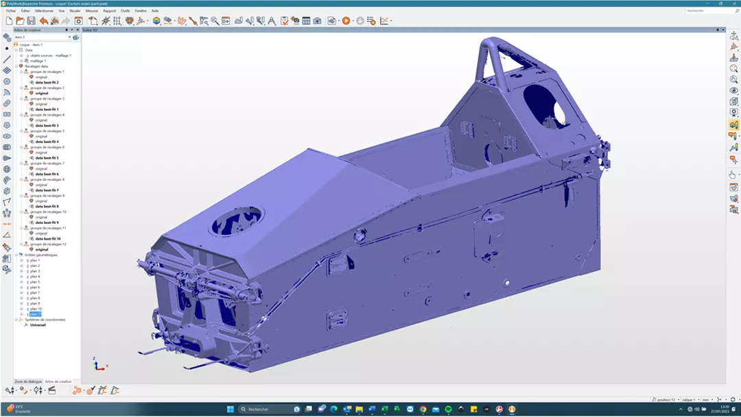 “如果表面上出現(xiàn)孔洞,借助多邊形掃描功能,您只需重新掃描孔洞即可。同時,借助PolyWorks中的選擇工具,我們可以刪除支撐、“清理”像素等。我們以前使用的軟件解決方案的服務提供商總是向我們收取“清理”部件的費用,然后再收取“清理”掃描的費用。Laurent先生說“過去需要半天甚至一整天來完成掃描的零件,現(xiàn)在只需半小時或最多一小時就能完成掃描”,他特別強調說,即使是鋁制底盤,或者亮黑色、鍍鉻的零件也能輕松完成掃描。