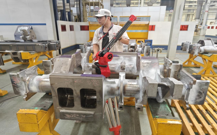 機車的轉(zhuǎn)向架是其重要組成部分,具有以下作用:(1)傳力--將輪軌接觸點的牽引力和制動力傳給車鉤。(2)承重--分擔機車上部重量并均勻分配給每個輪對。(3)實現(xiàn)機車在線路上的轉(zhuǎn)向運行。在業(yè)內(nèi)轉(zhuǎn)向架也被稱為機車的三大件之一,可見轉(zhuǎn)向架的重要性。所以機車制造對轉(zhuǎn)向架的橫梁/側(cè)梁及對應(yīng)工裝夾具的加工有著極其嚴格的質(zhì)量要求。